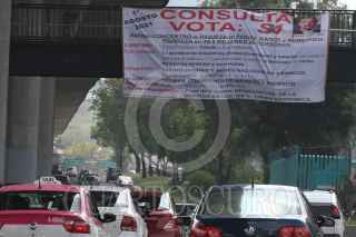 CIUDAD DE MÉXICO, 31JULIO2021.- Horas antes de que se realiza la Consulta Popular para llevar a juicio a ex presidentes, mantas con consignas para pedir el voto a favor de esta consulta aparecieron en puentes peatonales de Periférico Sur. FOTO: ROGELIO MORALES /CUARTOSCURO.COM