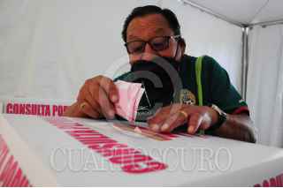 CIUDAD DE MÉXICO, 01AGOSTO2021.- Habitantes de la capital del país se dieron cita en las distintas casillas para participar en la Consulta Ciudadana 2021 donde se decidirá si se inicia un juicio político contra los últimos cinco ex presidentes mexicanos (Enrique Peña Nieto, Felipe Calderón, Vicente Fox, Ernesto Zedillo y Carlos Salinas de Gortari). Los adultos mayores son los que más continuaban presentándose en las casillas. FOTO: DANIEL AUGUSTO /CUARTOSCURO.COM