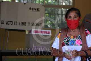 CAMPECHE, CAMPECHE, 01AGOSTO2021.- Baja participación en la Consulta Popular 2021 que busca enjuiciar a Ex Presidentes de México. Habitantes de comunidades mayas se quejaron de que las casillas les quedaron muy lejos de su hogar, en algunos casos, cuando ya llegaban los funcionarios les decía que no les tocaba ahí y los mandaban a otro aún mas lejana, situación que les provocaba molestia por lo que optaban regresar a sus casas sin emitir su voto. FOTO: MICHAEL BALAM/CUARTOSCURO.COM
