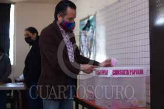XALAPA, VERACRUZ, 01AGOSTO2021.- El Gobernador Cuitláhuac García participó en la Consulta Popular 2021, que busca enjuiciar los Ex Presidentes de México. El mandatario señaló que la votación en el estado se podrían verse afectada porque de los 212 municipios en 30 no instalaron mesas receptoras; además, hay 30 por ciento menos espacios respecto al proceso electoral del pasado mes de junio. FOTO: YERANIA ROLÓN/CUARTOSCURO.COM