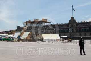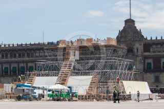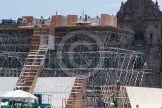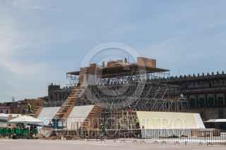 CIUDAD DE MÉXICO, 02AGOSTO2021.- Continúa la construcción de la maqueta monumental del Huey Teocalli en el Zócalo, con motivo de los 500 años de Resistencia Indígena en México-Tenochtitlán, misma que será inaugurada el 13 de agosto. FOTO: MOISÉS PABLO/CUARTOSCURO.COM