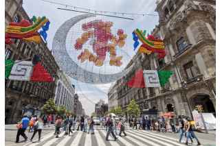 CIUDAD DE MÉXICO, 02AGOSTO2021.- En el zócalo continúa la instalación de la iluminación alusiva a los 500 Años de Resistencia Indígena en México-Tenochtitlán. FOTO: MOISÉS PABLO/CUARTOSCURO.COM