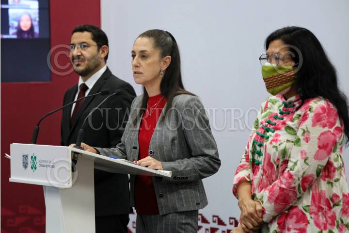CIUDAD DE MÉXICO, 02AGOSTO2021.- Claudia Sheinbaum Pardo, Jefa de Gobierno; Martí Batres, secretario de Gobierno, y Nashieli Ramírez Hernández, presidenta de la Comisión de Derechos Humanos de la Ciudad de México (CDHCM), participaron en la conferencia virtual del gobierno capitalino. FOTO: GOBIERNO DE LA CIUDAD DE MÉXICO