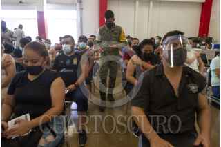 ESCOBEDO, NUEVO LEÓN, 04AGOSTO2021.- Miles de personas de 30 a 39 años acuden a los módulos que corresponden a la vacunación contra la Covid-19 en el municipio de Escobedo. Se estima que sean alrededor de 65 mil personas que reciban la vacuna Pfizer. FOTO: GABRIELA PÉREZ MONTIEL / CUATOSCURO.COM