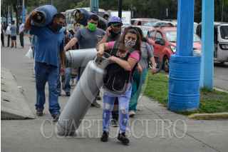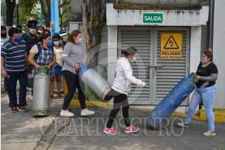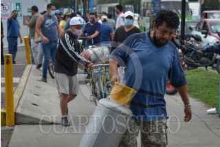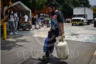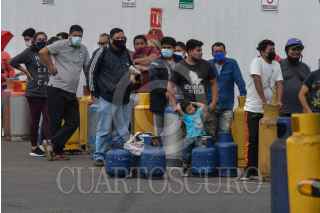 CIUDAD DE MÉXICO, 04AGOSTO2021.- Personas se forman para rellenar sus tanques de gas LP en las distribuidoras de este hidrocarburos ubicadas sobre la avenida Javier Rojo Gómez luego de que volvieran a brindar el servicio tras el paro nacional que el Gremio Gasero Nacional realiza por la entrada en vigor del esquema de regulación de precios de la Comisión Reguladora de Energía (CRE). FOTO: MARIO JASSO/CUARTOSCURO.COM