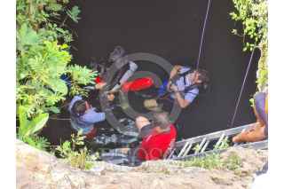CANCÚN, QUINTANA ROO, 04AGOSTO2021.- Personal de rescate acuático trabajo para localizar el cuerpo de una persona, que sospechan se metió a nadar a un cenote de la Supermanzana 225. El reporte se dio la mañana de este miércoles, cuando familiares del desaparecido acudieron al cenote en la manzana 40, pues sabían que el hombre se había metido a nadar, al parecer bajo los efectos del alcohol. Por más de cuatro horas personal de la Cruz Roja, Bomberos y Protección Civil trabajaron con buzos de rescate acuático pero no lograron ubicar el cuerpo de la persona. Tras horas de trabajo, los rescatistas suspendieron la búsqueda, explicando a la familia que Bomberos y Protección Civil iban a hacer recorridos durante la tarde. Asimismo, la búsqueda se retomaría este jueves en dado caso que durante la tarde de hoy no flote o se localice el cuerpo. FOTO: ELIZABETH RUIZ/CUARTOSCURO.COM