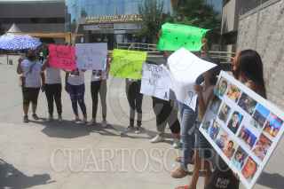CIUDAD JUÁREZ, CHIHUAHUA, 04GOSTO2021.- Familiares de Tomás Enrique Flores Arrieta, quien falleció la madrugada del pasado miércoles en el Hospital 6 del IMSS a consecuencia de las heridas de bala producidas por un agente de la policía municipal, se manifestaron esta mañana para exigir justicia, y que se castigue al responsable. Exigieron hablar con el Fiscal de la Zona Norte Jorge Nava López para que la dependencia a su cargo lleve a efecto las investigaciones que permitan la captura y el castigo del responsable, quien hasta el momento se encuentra prófugo. Los hechos ocurrieron el 24 de julio en la Colonia Los Kilómetros al término de un partido de fútbol, en donde de acuerdo a testigos, Ricardo Pineda Méndez, identificado como agente de la policía municipal disparó en varias ocasiones en contra del menor de 16 años de edad. FOTO: NACHO RUIZ /CUARTOSCURO.COM