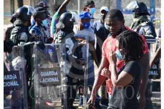 TAPACHULA, CHIAPAS, 05AGOSTO2021.- Elementos de la Guardia Nacional (GN), implementaron el operativo con diferentes dependencia en las oficinas de Comisión Mexicana de Ayuda a refugiados (COMAR ), para mantener de manera segura y ordenada las instalación de migrantes. FOTO: DAMIÁN SÁNCHEZ /CUARTOSCURO.COM