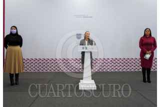 CIUDAD DE MÉXICO, 05AGOSTO2021.- Claudia Sheinbaum, jefa de gobierno, Ariadna Montiel, subsecretaria de Bienestar de la ciudad, Estefany Correa, delegada estatal de programas de desarrollo de bienestar, encabezaron la conferencia en la que se abordó el tema de programas de pensión para adultos mayores. FOTO: GOBIERNO DE LA CIUDAD DE MÉXICO /CUARTOSCURO.COM