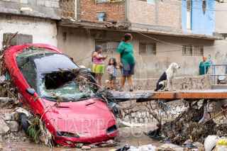 TORREÓN, COAHUILA, 05AGOSTO2021.- Una intensa tromba afectó con severas inundaciones a las colonias Polvorera, José R. Mijares y Camilo Torres, las corrientes de agua arrastraron varios vehículos que quedaron entre toneladas de basura en el canal, que había sido habilitado como un corredor deportivo. Autoridades locales dieron conocer que se habilitó como albergue el Gimnasio del Complejo Deportivo La Jabonera para las personas cuyos domicilios también fueron afectados por las lluvias. FOTO: ALEJANDRO ÁLVAREZ/CUARTOSCURO.COM
