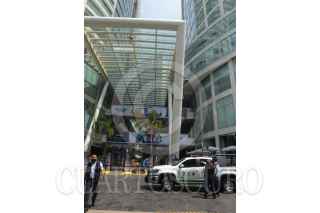 CIUDAD DE MÉXICO, 05AGOSTO2021.- Una ventana cae del piso 25 de la Plaza Comercial 222 en Avenida Reforma; la cual fracturó el domo de cristales donde fue cerrada para evitar heridos. FOTO: ARMANDO MONROY /CUARTOSCURO.COM