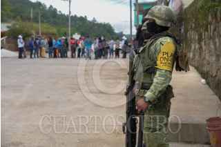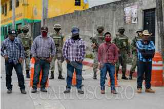 PANTELHÓ, CHIAPAS, 06AGOSTO2021.- Instalan segunda mesa de diálogo por Pantelhó, estuvieron presentes autoridades estatales y federales. El lugar es resguardado por elementos del Ejército Mexicano y el grupo de autodefensa "El Machete". FOTO: JOSÉ SANTIZ/CUARTOSCURO.COM