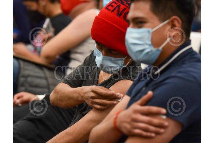 TOLUCA, ESTADO DE MÉXICO, 06AGOSTO2021.- Este viernes concluyó la vacunación para trabajadores de 18 a 29 años de edad, aplicándoles la vacuna contra COVID-19 de SINOVAC, como parte de un programa especial dirigido a los trabajadores afiliados al IMSS, en las últimas dos semanas se han vacunado cerca de 73 mil trabajadores en la entidad mexiquense; recibieron la primera dosis del biológico del Centro de Convenciones y Exposiciones Toluca, los trabajadores fueron transportados en camiones desde sus empresas y regresaron a su lugar de origen vacunados. FOTO: CRISANTA ESPINOSA AGUILAR /CUARTOSCURO.COM