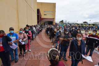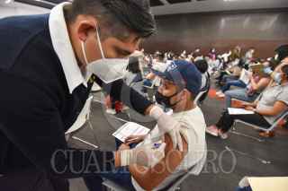 TOLUCA, ESTADO DE MÉXICO, 06AGOSTO2021.- Este viernes concluyó la vacunación para trabajadores de 18 a 29 años de edad, aplicándoles la vacuna contra COVID-19 de SINOVAC, como parte de un programa especial dirigido a los trabajadores afiliados al IMSS, en las últimas dos semanas se han vacunado cerca de 73 mil trabajadores en la entidad mexiquense; recibieron la primera dosis del biológico del Centro de Convenciones y Exposiciones Toluca, los trabajadores fueron transportados en camiones desde sus empresas y regresaron a su lugar de origen vacunados. FOTO: CRISANTA ESPINOSA AGUILAR /CUARTOSCURO.COM