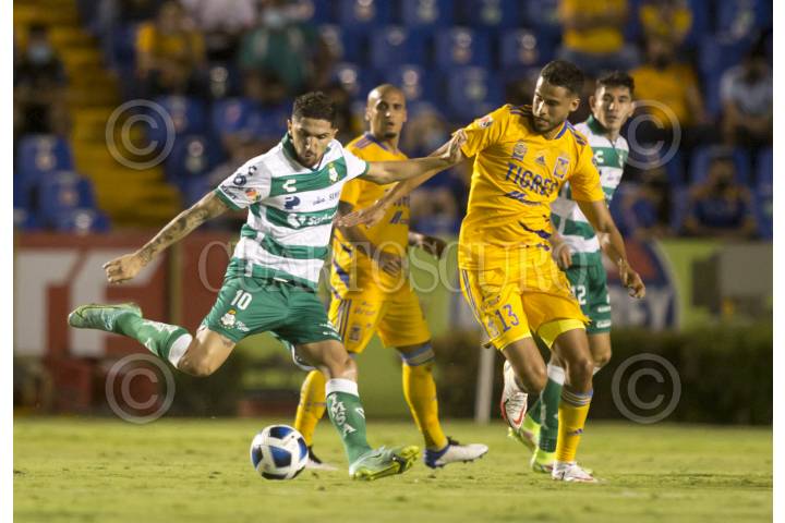 SAN NICOLÁS DE LOS GARZA, NUEVO LEÓN, 07AGOSTO2021.- Tigres y Santos empatan a un gol en estadio Universitario, durante la jornada 3 de la Liga Mx, Apertura 2021. FOTO: GABRIELA PÉREZ MONTIEL / CUARTOSCURO.COM