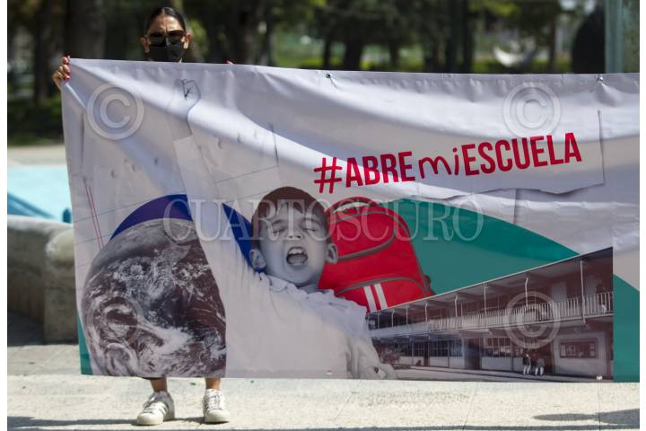 MONTERREY, NUEVO LEÓN, 08AGOSTO2021.- Un grupo de padres de familia y niños miembros de "Abre mi Escuela Nuevo León" marcharon hacia la Secretaría de Salud exigiendo que el próximo 30 de agosto reabran las escuelas a modo presencial en el estado, las cuales han estado cerradas desde el inicio de la Pandemia por la Covid-19 FOTO: GABRIELA PÉREZ MONTIEL / CUARTOSCURO.COM