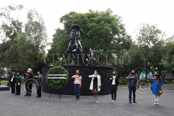 CIUDAD DE MÉXICO, 08AGOSTO2021.- En la Alameda del Sur, se realizó la ceremonia cívica, para conmemorar el natalicio Emiliano Zapata, con la presencia de Claudia Sheinbaum, Jefa de Gobierno de la Ciudad de México, acompañada de Edgar Castro Zapata, bisnieto del General, así como Vannesa Bohórquez López, Secretaria de Cultura capitalina. FOTO: GCDMX /CUARTOSCURO.COM