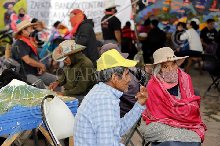 JUAN C. BONILLA, PUEBLA, 8AGOSTO2021.- Los Pueblos Unidos mantienen plantón en defensa del agua y la vida frente a la empresa Bonafont ubicada en el municipio de Juan C. Bonilla. Esta tarde integrantes del Frente de Pueblos Unidos sostuvieron una asamblea en dicho plantón tras la cual tomaron las instalaciones de la planta. FOTO: MIREYA NOVO /CUARTOSCURO.COM