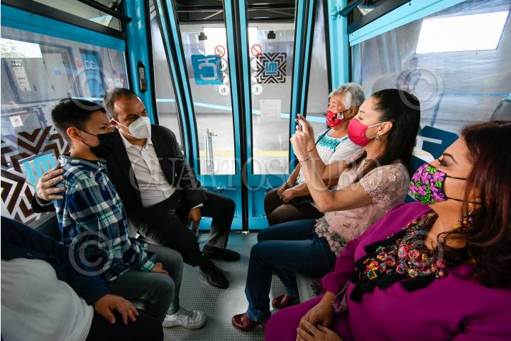 CIUDAD DE MÉXICO, 08AGOSTO2021.- Claudia Sheinbaum, jefa de gobierno de la Ciudad de México, en compañía de Clara Brugada, alcaldesa de Iztapalapa; José Obed Rouanett, presidente de la Constructora ALFA; Andrés Lajous, secretario de Movilidad de la capital; Jorge Árganís, secretario de Comunicaciones y Transportes, así como los gobernadores de Michoacán, Alfredo Ramírez Bedolla, y Cuauhtémoc Blanco de Morelos, encabezaron la inauguración de la línea 2 del Cablebus Iztapalapa. FOTO: GOBIERNO DE LA CIUDAD /CUARTOSCURO.COM