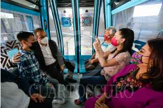 CIUDAD DE MÉXICO, 08AGOSTO2021.- Claudia Sheinbaum, jefa de gobierno de la Ciudad de México, en compañía de Clara Brugada, alcaldesa de Iztapalapa; José Obed Rouanett, presidente de la Constructora ALFA; Andrés Lajous, secretario de Movilidad de la capital; Jorge Árganís, secretario de Comunicaciones y Transportes, así como los gobernadores de Michoacán, Alfredo Ramírez Bedolla, y Cuauhtémoc Blanco de Morelos, encabezaron la inauguración de la línea 2 del Cablebus Iztapalapa. FOTO: GOBIERNO DE LA CIUDAD /CUARTOSCURO.COM