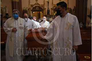 XALAPA, VERACRUZ, 08AGOSTO2021.- Este domingo el arzobispo de Xalapa, Hipólito Reyes Larios, murió repentinamente a los 74 años de edad, cuando estaba a punto de retirarse, a causa de una hemorragia interna; sus restos fueron trasladados a la Catedral Metropolitana, en donde serán velados y sepultados. FOTO: YERANIA ROLÓN /CUARTOSCURO.COM