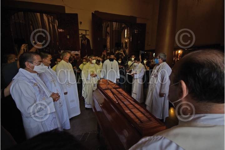 XALAPA, VERACRUZ, 08AGOSTO2021.- Este domingo el arzobispo de Xalapa, Hipólito Reyes Larios, murió repentinamente a los 74 años de edad, cuando estaba a punto de retirarse, a causa de una hemorragia interna; sus restos fueron trasladados a la Catedral Metropolitana, en donde serán velados y sepultados. FOTO: YERANIA ROLÓN /CUARTOSCURO.COM