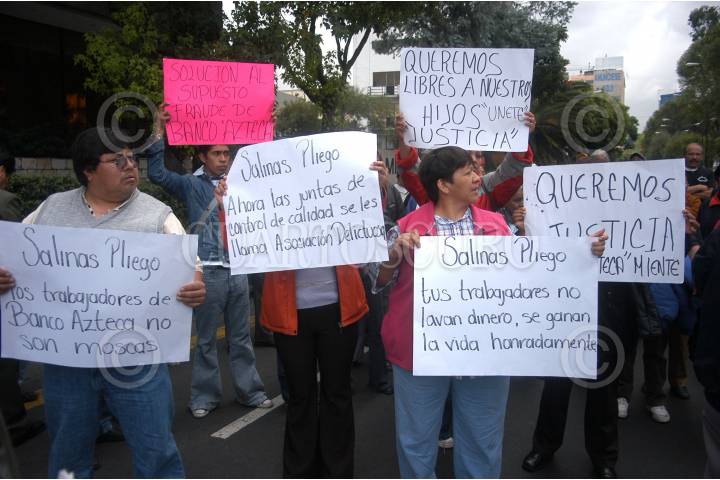 MÉXICO D.F. 25SEPTIEMBRE2006.- Trabajadores de "Banco Azteca" protestan por los compañeros detenidos por querer formar un sindicato. FOTO: GUILLERMO PEREA/CUARTOSCURO.COM