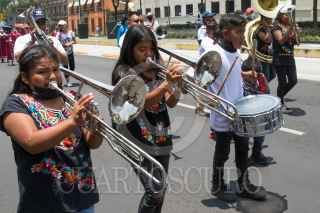 CIUDAD DE MÉXICO, 09AGOSTO2021.- Grupos indígenas de diversas etnias residentes en la Ciudad de México marcharon del Ángel de la Independencia rumbo al Zócalo en el marco de la "12a jornada por la visibilización de la presencia indígena y afromexicana en la Ciudad de México, Día Internacional de los Pueblos Indígenas, la cual tiene como finalidad de combatir la discriminación y el racismo". FOTO: MOISÉS PABLO/CUARTOSCURO.COM