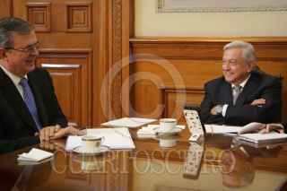 CIUDAD DE MÉXICO, 09AGOSTO2021.- Andrés Manuel López Obrador, Presidente de México, sostuvo una llamada telefónica con Kamala Harris, vicepresidenta de Estados Unidos. Fue acompañado por Marcelo Ebrard, secretario de Relaciones Exteriores. FOTO: PRESIDENCIA/CUARTOSCURO.COM