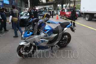 CIUDAD DE MÉXICO, 09AGOSTO2021.- Un motociclista perdió la vida al derrapar la moto donde circulaba, al caer un camión de transporte publico lo embistió; los hechos ocurrieron en el cruce de Circuito interior y Gutenberg en la colonia Anzures, en la Miguel Hidalgo. FOTO: CRISTIAN HERNÁNDEZ/CUARTOSCURO.COM