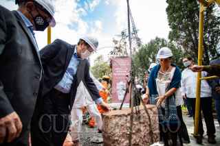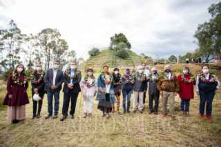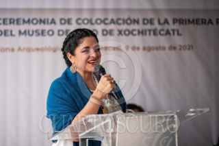 NATIVITAS, TLAXCALA, 09AGOSTO2021.- En seguimiento al compromiso convenido en marzo de 2020, esta tarde, la secretaria de Cultura del Gobierno de México, Alejandra Frausto Guerrero, en compañía del gobernador del estado de Tlaxcala, Marco Antonio Mena Rodríguez, y el director general del Instituto Nacional de Antropología e Historia (INAH), Diego Prieto Hernández, colocó la primera piedra del nuevo Museo de Sitio de la Zona Arqueológica de Xochitécatl, cuya construcción se estima concluya en diciembre próximo. FOTO: SECRETARÍA DE CULTURA/CUARTOSCURO.COM