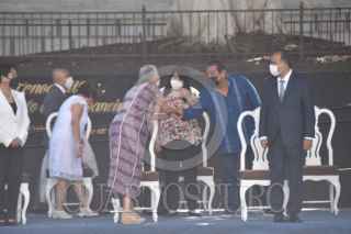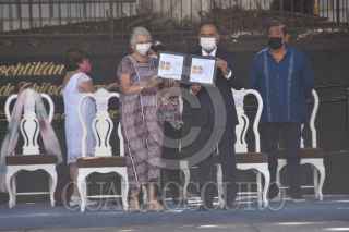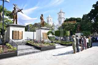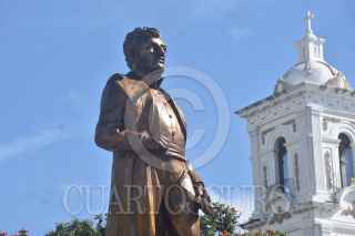 CHILPANCINGO, GUERRERO, 09AGOSTO2021.- Olga Sánchez Cordero, secretaria de Gobernación; Héctor Astudillo, gobernador de Guerrero; la senadora Nestora Salgado, y el senador Félix Salgado Macedonio, se develó una estatua de Vicente Guerrero, en la Plaza Cívica, en el marco del natalicio del héroe de la Independencia de México. Aparte las autoridades cancelaron un timbre postal conmemorativo. FOTO: DASSAEV TÉLLEZ ADAME/CUARTOSCURO.COM