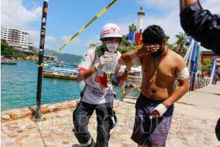 ACAPULCO, GUERRERO, 10AGOSTO2021.- Una balacera entre civiles armados dejó 4 lesionados y 3 detenidos, los hechos ocurrieron en la popular Playa Caleta, en la zona tradicional del puerto. El lugar fue resguardado por policías municipales, Guardia Nacional y soldados. FOTO: CARLOS ALBERTO CARBAJAL/CUARTOSCURO.COM