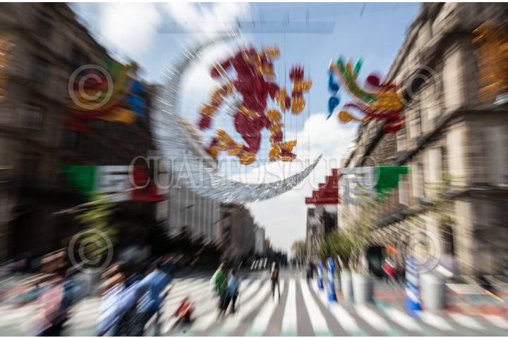 CIUDAD DE MÉXICO, 11AGOSTO2021.- Como parte de la conmemoración del 500 aniversario de la caída de Tenochtitlán se está construyendo una representación gigantesca del Templo Mayor en pleno Zócalo. Tiene una altura aproximada de 16 metros y casi 675 metros cuadrados de superficie. Está construida, principalmente, con tubería para la estructura, con algunos materiales plásticos reciclados y detalles en fibra de vidrio. Esta construcción ha causado polémica en redes sociales ya que por granizadas y lluvias el verdadero sitio prehispánico se encuentra cerrado al público porque no han podido reparar los daños causados desde hace cerca de 4 meses. FOTO: ANDREA MURCIA /CUARTOSCURO.COM