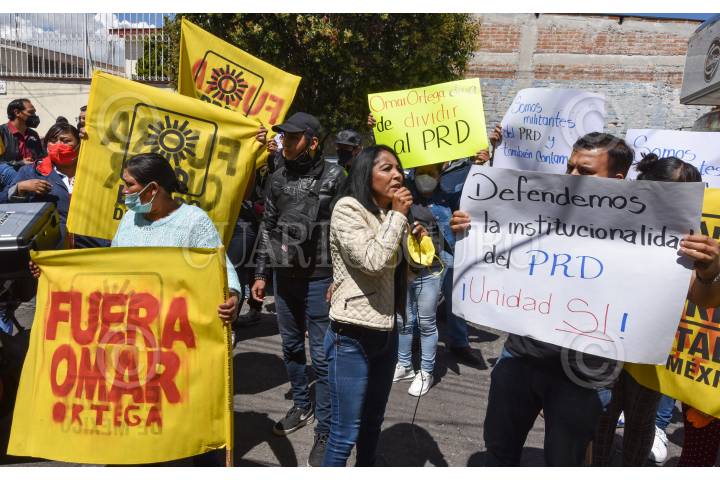 TOLUCA, ESTADO DE MÉXICO, 11AGOSTO2021.- Javier Rivera Escalona, Presidente Interino del PRD en el Estado de México, acompañado por integrantes del Consejo Estatal informaron sobre el rumbo que tomará este partido político en las siguientes semanas, durante la conferencia de forma abrupta interrumpieron militantes perredistas que se encuentran inconformes con el cambio de dirigencia. FOTO: CRISANTA ESPINOSA AGUILAR /CUARTOSCURO.COM