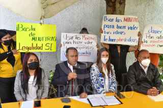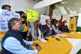 TOLUCA, ESTADO DE MÉXICO, 11AGOSTO2021.- Javier Rivera Escalona, Presidente Interino del PRD en el Estado de México, acompañado por integrantes del Consejo Estatal informaron sobre el rumbo que tomará este partido político en las siguientes semanas, durante la conferencia de forma abrupta interrumpieron militantes perredistas que se encuentran inconformes con el cambio de dirigencia. FOTO: CRISANTA ESPINOSA AGUILAR /CUARTOSCURO.COM