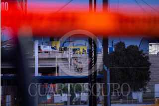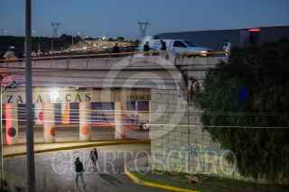 ZACATECAS, ZACATECAS, 12AGOSTO2021.- Seis hombres fueron asesinados y colgados en un puente vehicular de la capital zacatecana. Al rededor de las 5:30 de la mañana las corporaciones de seguridad recibieron el reporte del hallazgo de 6 personas asesinadas, cuatro sobre el puente también llamado Del Orito, y dos personas más que habría caído a la calle, en el cruce de la Calzada Luis Moya y vialidad Transito Pesado, en la colonia Estrella de Oro. Peritos de la Fiscalía General del Estado realiza las primeras investigaciones y el lugar quedó bajo resguardo de policía ministerial, Guardia Nacional y Ejército Mexicano. FOTO: ADOLFO VLADIMIR /CUARTOSCURO.COM