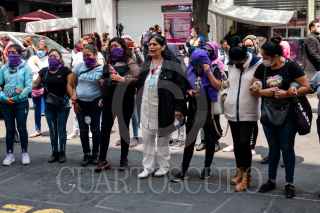 CIUDAD DE MÉXICO, 12AGOSTO2021.- Mujeres de diversos colectivos feministas acudieron a la Fiscalía General de Justicia de la Ciudad de México (FGJCDMX) para exigir atención de las autoridades tras haber sido agredidas por comerciantes ambulantes del metro Cuatro Caminos. Las mujeres se dedican a la comercialización de artículos dentro del sistema de transporte como protesta contra la violencia económica y fue el día de ayer cuando fueron agredidas y amenazadas por los comerciantes sin que las autoridades hayan abierto una carpeta de investigación. FOTO: GALO CAÑAS/CUARTOSCURO.COM