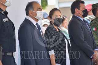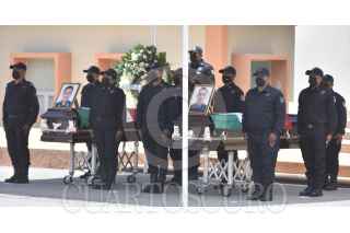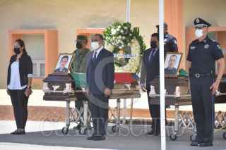 CHILPANCINGO, GUERRERO, 12AGOSTO2021.- Autoridades de Guerrero encabezadas por el gobernador Héctor Astudillo Flores rindieron un homenaje de cuerpo presente a los policías Lamberto Guzmán López y Marco Antonio Aldabera Flores, quienes fueron asesinados ayer en el poblador de San Alejo, de Ixtapan de la Sal, en un ataque armado dirigido a la presidenta municipal de Pilcaya, Sandra Velázquez Lara, quien también estuvo presente. El homenaje de realizó en las instalaciones de la Universidad Policial, al que asistieron las esposas y los hijos de los policías asesinados, ahí, el gobernador Astudillo Flores dijo que todas las instituciones de seguridad del país saben quiénes son los responsables del ataque y sus actividades. FOTO: DASSAEV TÉLLEZ ADAME/CUARTOSCURO.COM
