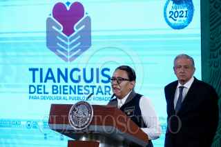 CIUDAD DE MÉXICO, 13AGOSTO2021.- Andrés Manuel López Obrador, presidente de México. en compañía de: Rosa Icela Rodríguez, secretaria de Seguridad y Protección Ciudadana; Luis Cresencio Sandoval, secretario de la Defensa Nacional; Roberto Salcedo Aquino, secretario de la Función Pública; Rogelio Ramírez de la O, secretario de Hacienda y Crédito Público; Delfina Gómez, secretaria de Educación Pública; Alejandro Esquer Verdugo, secretario particular del presidente; Luis Rodríguez Bucio, comandante de la Guardia Nacional; Raquel Buenrostro, jefa del Servicio de Administración Tributaria (SAT); Luis Bárcenas Vázquez, director corporativo de Administración y Liquidación de Activos del INDEP, y César Iván Escalante, coordinador operativo del nuevo programa “Tianguis del Bienestar”, presentaron este nuevo proyecto que tendrá como objetivo el entregar artículos decomisados que no formen parte de una investigación judicial a municipios en extrema pobreza. FOTO: GALO CAÑAS/CUARTOSCURO.COM