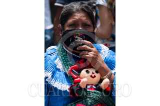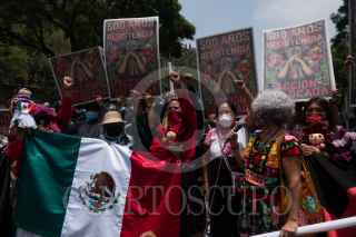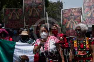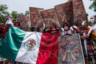 CIUDAD DE MÉXICO, 13AGOSTO2021.- María de Jesús Patricio Martínez "Marichuy", ex candidata zapatista a la presidencia en 2018, encabezó la conferencia frente a la Suprema Corte de Justicia de la Nación (SCJN) tras intentar ingresar al Zócalo. Acompañada de colectivos zapatistas expusieron su rechazo a megaproyectos y políticas que no respetan sus derechos y territorios con motivo de los 500 años de resistencia indígena. FOTO: GALO CAÑAS/CUARTOSCURO.COM