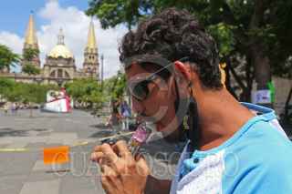GUADALAJARA, JALISCO, 13AGOSTO2021.- Esta tarde los colectivos 4:20 Guadalajara, Cannafestmx y Cannamedicos entre otros, dieron por concluida la segunda edición del Fumatón, que se llevo a cabo desde el día de ayer en la explanada de la Plaza de la Liberación y en donde permanecieron 24 desarrollando actividades en torno a la Marihuana y al Cannabis para buscar una adecuación regulatoria sobre el uso de la cannabis en el estado. FOTO: FERNANDO CARRANZA GARCIA / CUARTOSCURO.COM