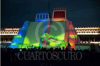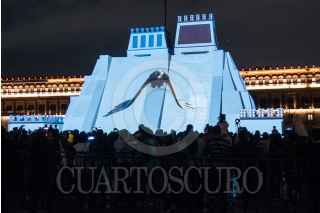 CIUDAD DE MÉXICO, 13AGOSTO2021.- Proyección de “Memoria Luminosa” en la maqueta monumental del Huey-Teocalli en el zócalo capitalino con motivo de los 500 Años de Resistencia Indígena. FOTO: MARIO JASSO/CUARTOSCURO.COM