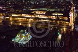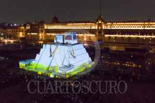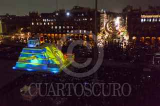 CIUDAD DE MÉXICO, 13AGOSTO2021.- Proyección de “Memoria Luminosa” en la maqueta monumental del Huey-Teocalli en el zócalo capitalino con motivo de los 500 Años de Resistencia Indígena. FOTO: MARIO JASSO/CUARTOSCURO.COM