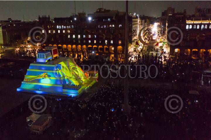 CIUDAD DE MÉXICO, 13AGOSTO2021.- Proyección de “Memoria Luminosa” en la maqueta monumental del Huey-Teocalli en el zócalo capitalino con motivo de los 500 Años de Resistencia Indígena. FOTO: MARIO JASSO/CUARTOSCURO.COM