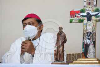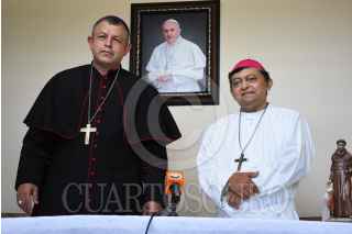 CAMPECHE, CAMPECHE 14 AGOSTO 2021.- En conferencia de prensa el Obispo de Campeche José Francisco González González, presento al presbítero José Luis Canto Sosa, quien fue nombrado por el papa Francisco como obispo de la Diócesis de San Andrés Tuxtla, Veracruz. Es el primer Obispo nombrado en la Diócesis de Campeche, desde que se creó hace 126 años Y el segundo campechano en ser elevado a la dignidad episcopal. El primero fue, en el siglo XIX, EL Dr. José María Guerra Rodríguez Correa, cuando todavía Campeche pertenecía al obispado Yucatán, de donde fue nombrado obispo. El Presbítero José Luis Canto Sosa nació en Calkini el 29 de octubre de 1960 y fue ordenado Diacono el 28 de Junio de 1996 y Presbítero el 27 de diciembre de 1996 en la catedral de Campeche. FOTO: MICHAEL BALAM/CUARTOSCURO.COM