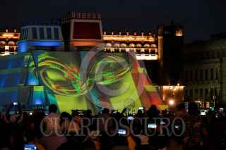 CIUDAD DE MÉXICO, 14AGOSTO2021.- Miles de personas acudieron por segundo día consecutivo a presenciar el espectáculo “Memoria Luminosa” que conmemora los “500 años de Resistencia Indígena” en el Zócalo capitalino. La ciudad entrará la próxima semana en su tercer semana en color naranja del Semáforo Epidemiológico por covid-19. FOTO: GALO CAÑAS/CUARTOSCURO.COM