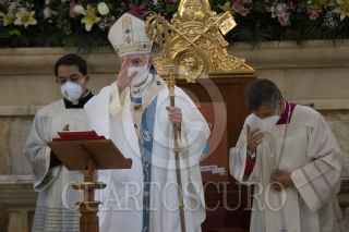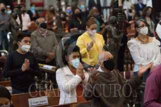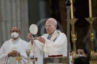 CIUDAD DE MÉXICO, 15AGOSTO2021.- El Arzobispo Carlos Aguiar Retes, encabezó la misa de la Asunción de la Virgen María patrona de la Arquidiócesis Primada de México en la Catedral Metropolitana, además de la celebración de la conclusión de la primera fase de la restauración del recinto. En la homilía estuvieron presentes Beatriz Gutiérrez Müller, esposa del Jefe del Ejecutivo; Manuel Bartlett, director de la CFE; Alejandra Frausto, secretaria de Cultura federal; Martí Bates, secretario de Gobierno; y José Alfonso Suárez del Real, ex secretario de Gobierno capitalino. FOTO: MOISÉS PABLO/CUARTOSCURO.COM