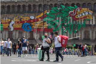CIUDAD DE MÉXICO, 15AGOSTO2021.- Gran afluencia de personas se presentó en el zócalo esto a pesar de que las autoridades cerraron la estación del metro que converge en el primer cuadro, y es que la maqueta del Huey-Teocalli y los adornos colocados por la conmemoración de los "500 Años de Resistencia Indígena México-Tenochtitlán" han causado mucha expectación entre los capitalinos. FOTO: MOISÉS PABLO/CUARTOSCURO.COM