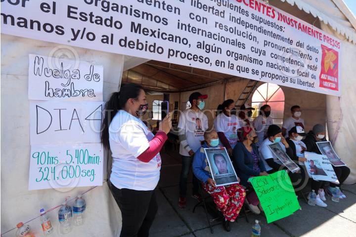 TOLUCA, ESTADO DE MÉXICO, 15AGOSTO2021.- En su cuarto día de huelga de hambre de integrantes de #HazValerMibertad se unieron 6 personas más, sumando 11 personas a esta exigencia por que sea aplicada la Ley de Amnistía para sus familiares injustamente presos, instalados en una tienda en la Plaza de los Mártires y solo tomando agua y suero, seguirán ahí hasta que las autoridades les hagan caso. FOTO: CRISANTA ESPINOSA AGUILAR /CUARTOSCURO.COM